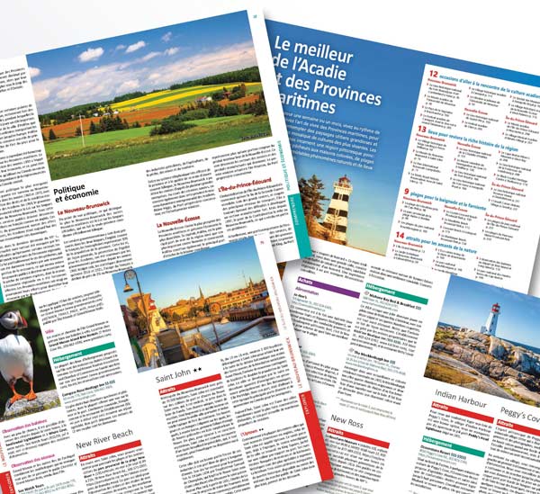 Acadie et Provinces maritimesLes provinces maritimes canadiennes, soit le Nouveau-Brunswick, la Nouvelle-Écosse et l’Île-du-Prince-Édouard, forment une région pittoresque qui conjugue la splendeur de milliers de kilomètres de paysages côtiers à de riches traditions locales et à un art de vivre fascinant. Il y a, dans ces provinces, certains des plus beaux sites naturels de l’est du continent américain. Ce coin de pays, c'est aussi celui des Acadiens, peuple chaleureux et courageux qui, malgré les affres de l'histoire, reste fidèlement attaché à ses origines françaises Découvrez ce livre ► |